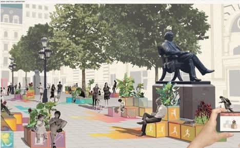 Technology is a core piece to the McGregor Coxall puzzle, and to ensure every detail was in its proper place, the London cityscape was designed with what Cowdy described as an “intelligent street system.” They call it “Smart Carpet,” and it’s a way to rethink the street of tomorrow with modular furniture, LED paving, kinetic energy generation, interlock-able furniture and more. The result is an interactive and engaging environment that can be easily redesigned for the needs of the public. In their proposal, McGregor Coxall noted that the furniture can be “endlessly configured for events, dining, meeting spaces, work hubs and play spaces.”