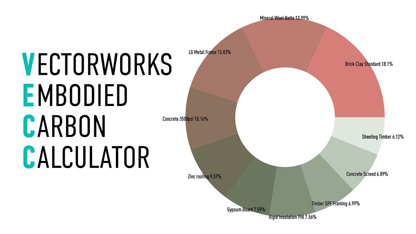 The Vectorworks Embodied Carbon Calculator (VECC) provides you with the ability to assess embodied carbon emissions through a project’s lifecycle. The analysis looks at individual materials, a project’s lifecycle stages, and benchmarks for set targets.